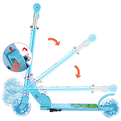 WeSkate Roller Kinder 2 Räder Klappbar Scooter, 3 Höhenverstellbare Kinderroller, PU Led-räder Kinderscooter für Mädchen…