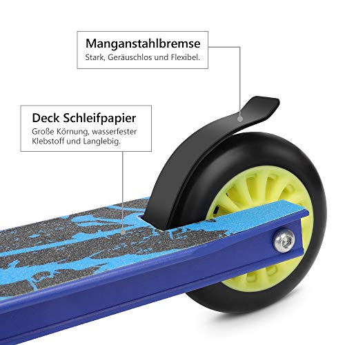 Hauptparameter – Rollen: 100mm Durchmesser, 5K PU, Kernmaterial Alu / ABEC 7 Kugellager / 50cm Steel Lenker / TPR Handgriffe / Manganstahlbremse / Gesamtgewicht: 3.3 kg