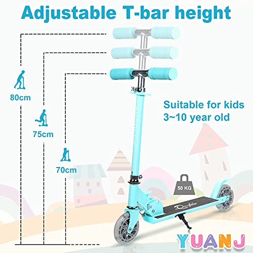 Yuanj Scooter Roller Kinder 6 Jahre, Höhenverstellbarer Scooter Kinder mit LED PU Räder, Kinder Roller für Mädchen ab 3-8 Jahre Tretroller Kinder
