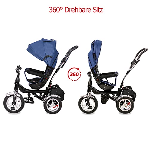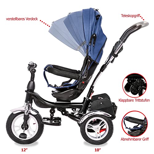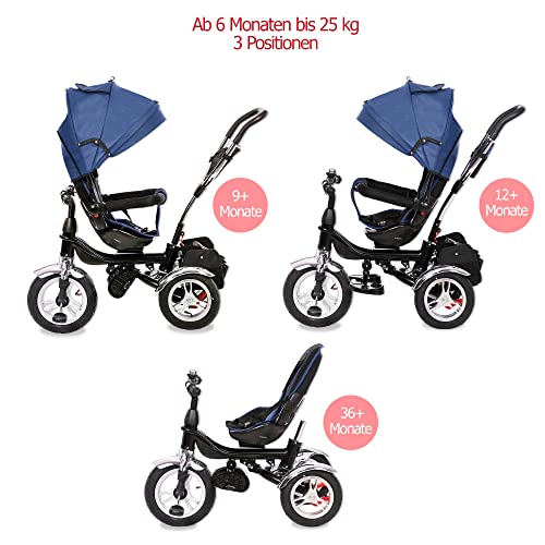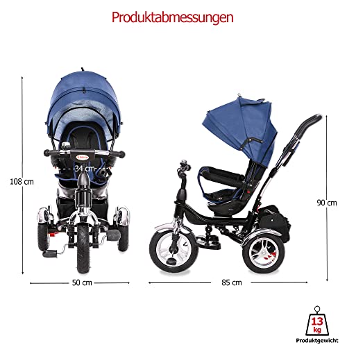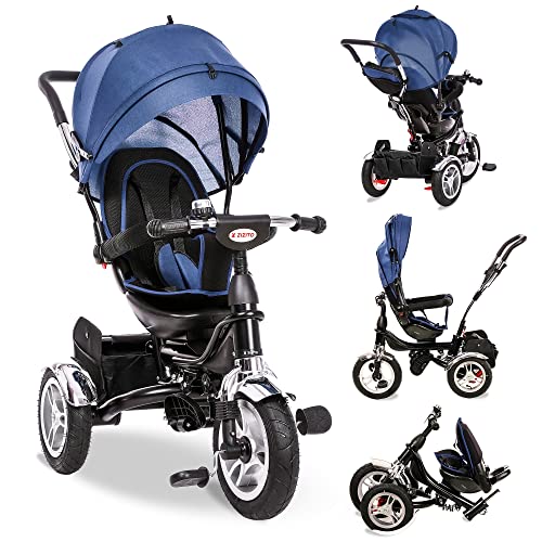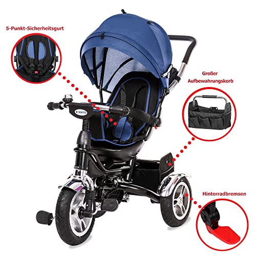 ZIZITO Troy Dreirad mit Schubstange, ab 6 Monaten bis 25 kg, Bequemer Sitz, 360° Drehbar, viel Zubehör